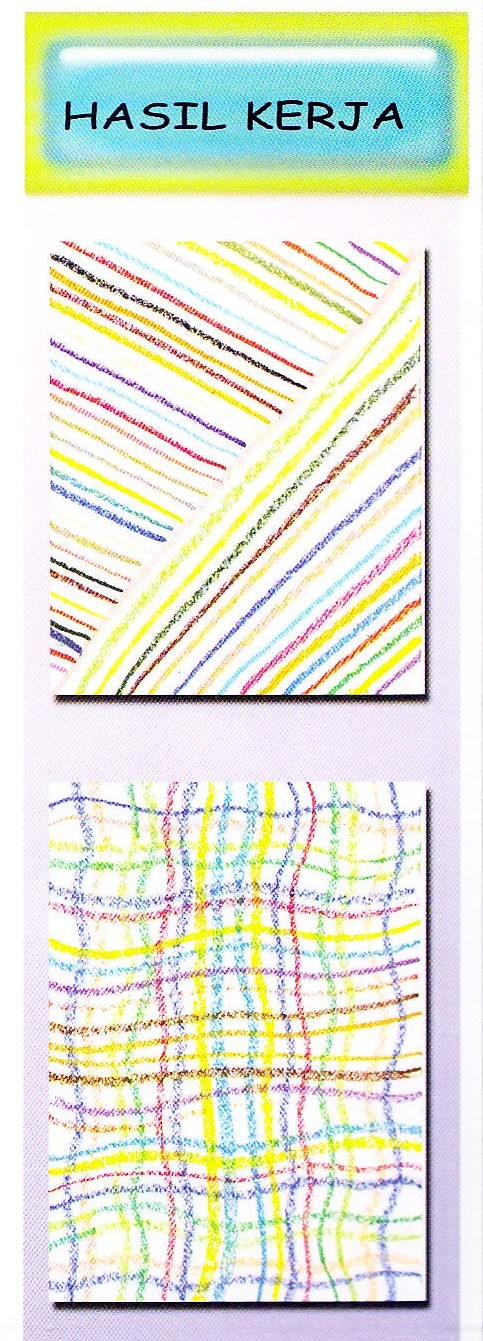 Penerangan : Murid diminta menghasilkan corak tak terancang dengan menggunakan bentuk-